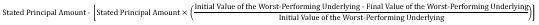 If the Notes are not called prior to maturity and the Final Value of the Worst-Performing Underlying is less than its Threshold Value, you will receive