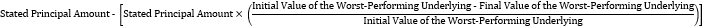 Value, you will receive the Stated Principal Amount; otherwise, your Notes are subject to 1-to-1 downside exposure to decreases in the Worst-Performing Underlying from its Initial Value, with up to 100% of the Stated Principal Amount at risk.