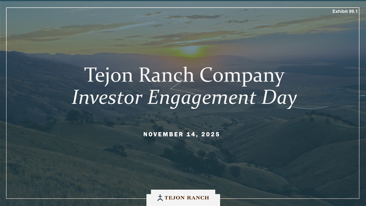 Tejon Ranch Company Investor Engagement Day NOVEMBER 14, 2025