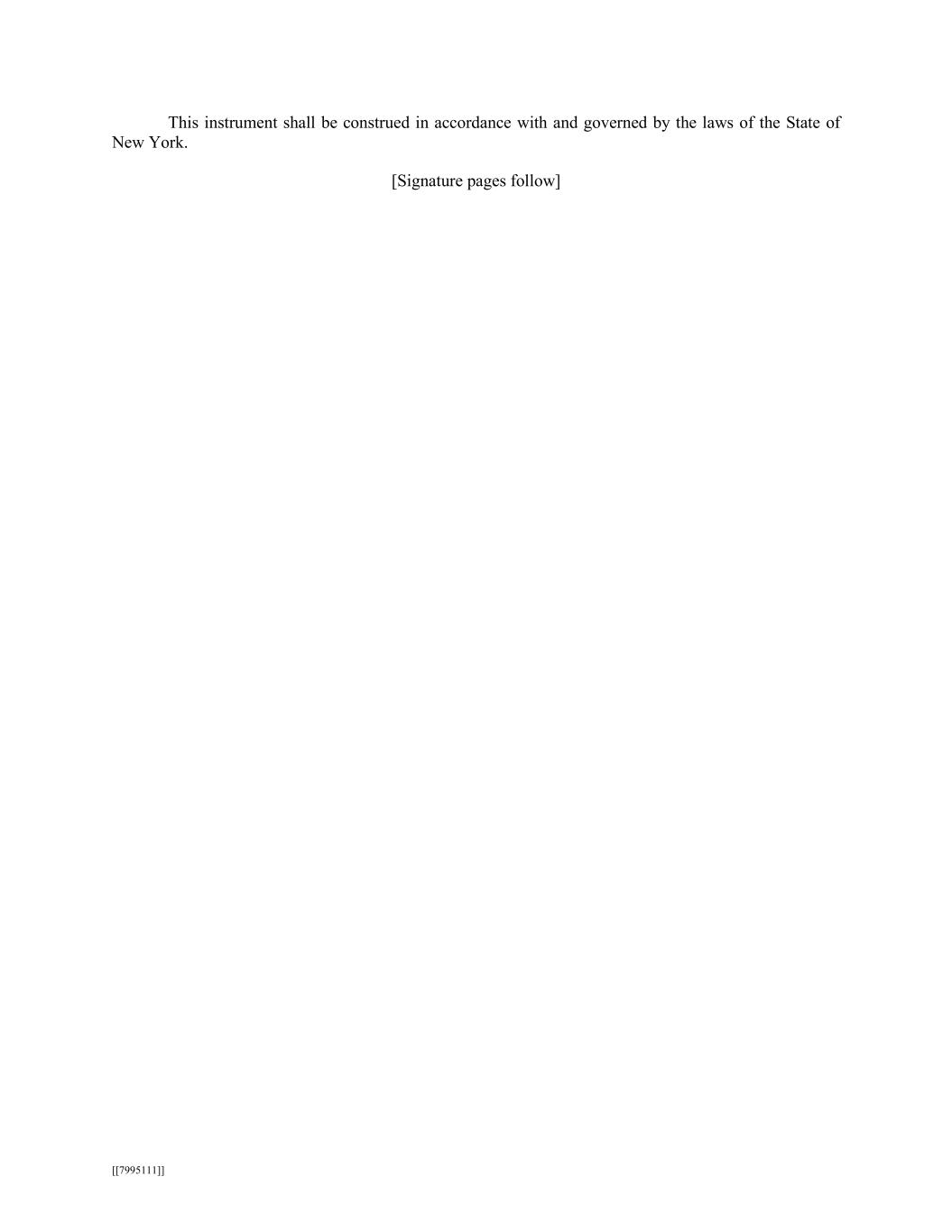 [[7995111]] This instrument shall be construed in accordance with and governed by the laws of the State of New York. [Signature pages follow]