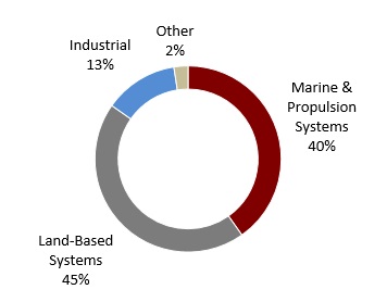 We have a diversified product and market portfolio made up of three segments: marine and propulsion systems, land-based systems and industrial products.