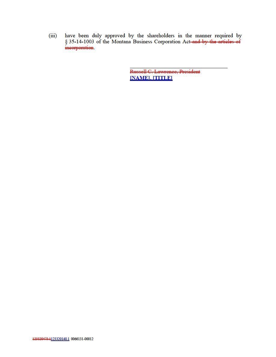 | (iii) | have been duly approved by the shareholders in the manner required by § 35‑14‑1003 of the Montana Business Corporation Act. |