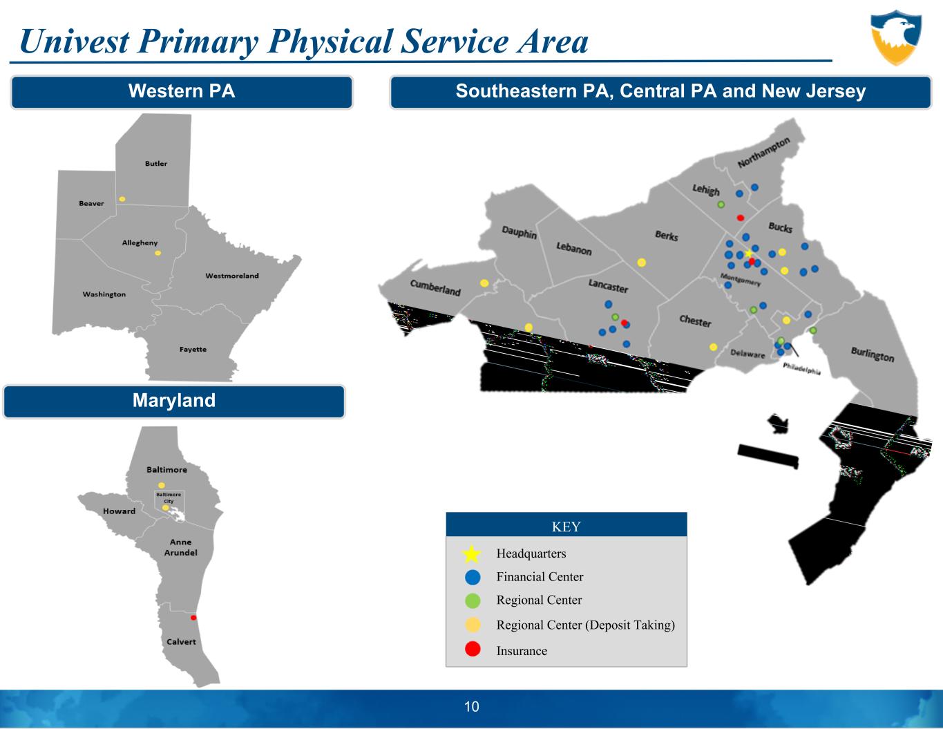 Univest Primary Physical Service Area 10 KEY Headquarters Financial Center Regional Center Regional Center (Deposit Taking) Insurance Western PA Maryland Southeastern PA, Central PA and New Jersey