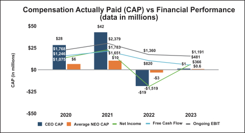 We supplement the reporting of our financial information determined under U.S. generally accepted accounting principles (GAAP) with certain non-GAAP financial measures, some of which we refer to as “ongoing business” measures, including ongoing earnings per diluted share, ongoing earnings before interest and taxes (EBIT), and free cash flow. Ongoing business measures exclude items that may not be indicative of, or are unrelated to, results from our ongoing business operations and provide a better baseline for analyzing trends in our underlying businesses. Management believes that free cash flow provides investors and stockholders with a relevant measure of liquidity and a useful basis for assessing the company’s ability to fund its activities and obligations.