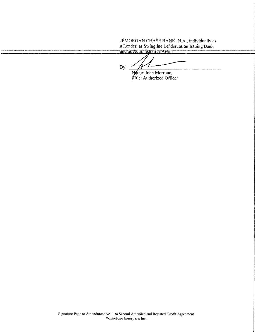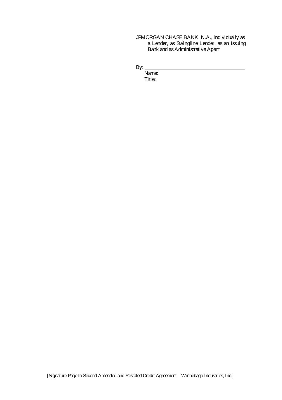JPMORGAN CHASE BANK, N.A., individually as a Lender, as Swingline Lender, as an Issuing Bank and as Administrative Agent By: Name: Title: [Signature Page to Second Amended and Restated Credit Agreement – Winnebago Industries, Inc.]