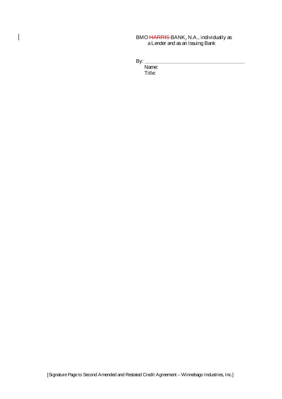 BMO HARRIS BANK, N.A., individually as a Lender and as an Issuing Bank By: Name: Title: [Signature Page to Second Amended and Restated Credit Agreement – Winnebago Industries, Inc.]