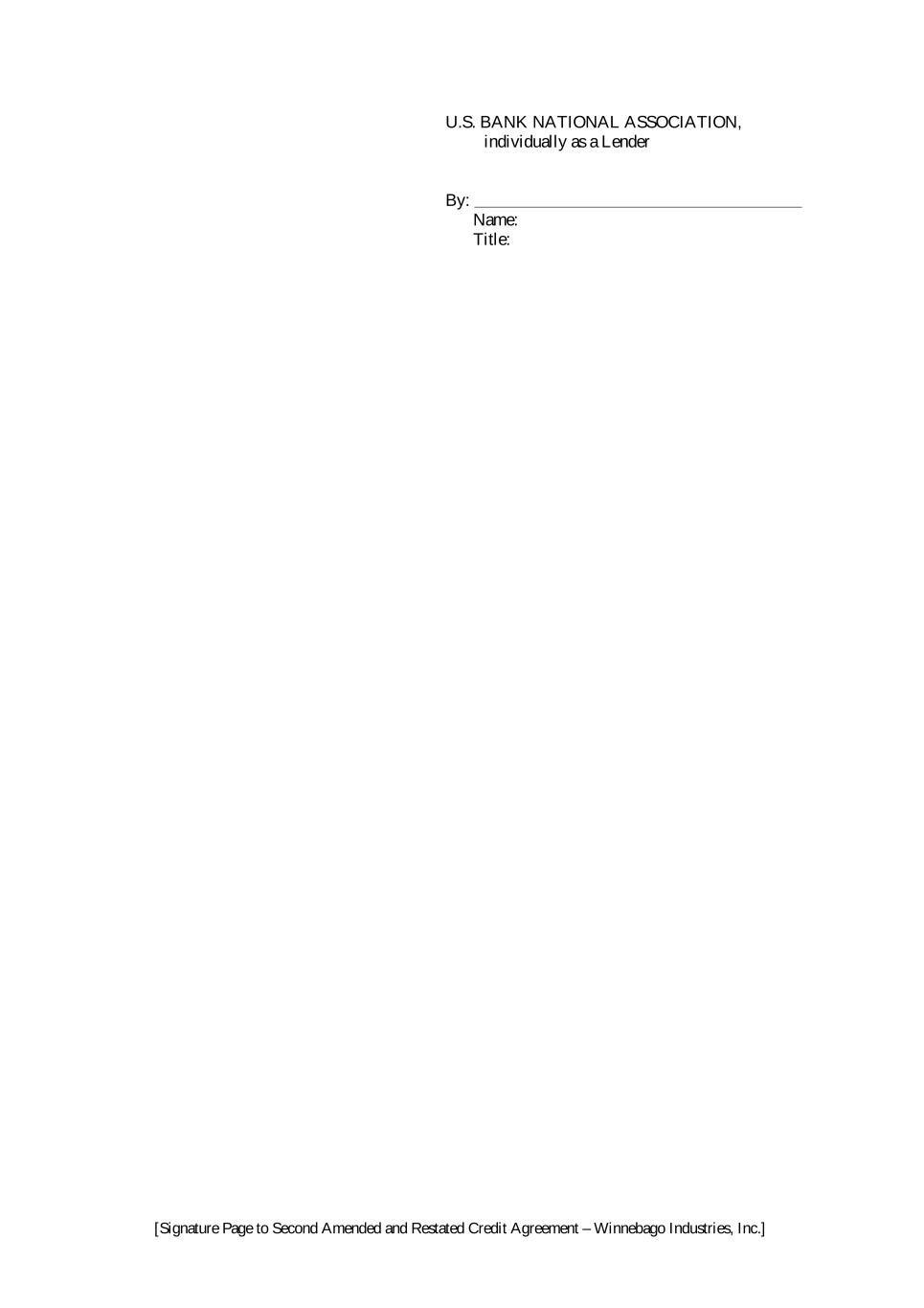 U.S. BANK NATIONAL ASSOCIATION, individually as a Lender By: Name: Title: [Signature Page to Second Amended and Restated Credit Agreement – Winnebago Industries, Inc.]