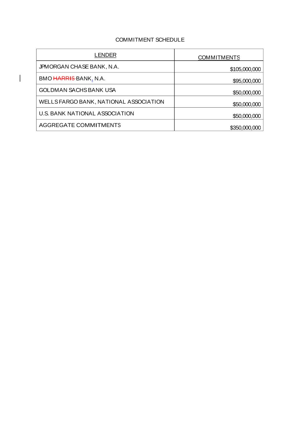 GOLDMAN SACHS BANK USA $50,000,000 JPMORGAN CHASE BANK, N.A. WELLS FARGO BANK, NATIONAL ASSOCIATION $105,000,000 $50,000,000 LENDER U.S. BANK NATIONAL ASSOCIATION $50,000,000 BMO HARRIS BANK, N.A. COMMITMENTS AGGREGATE COMMITMENTS $95,000,000 $350,000,000 COMMITMENT SCHEDULE