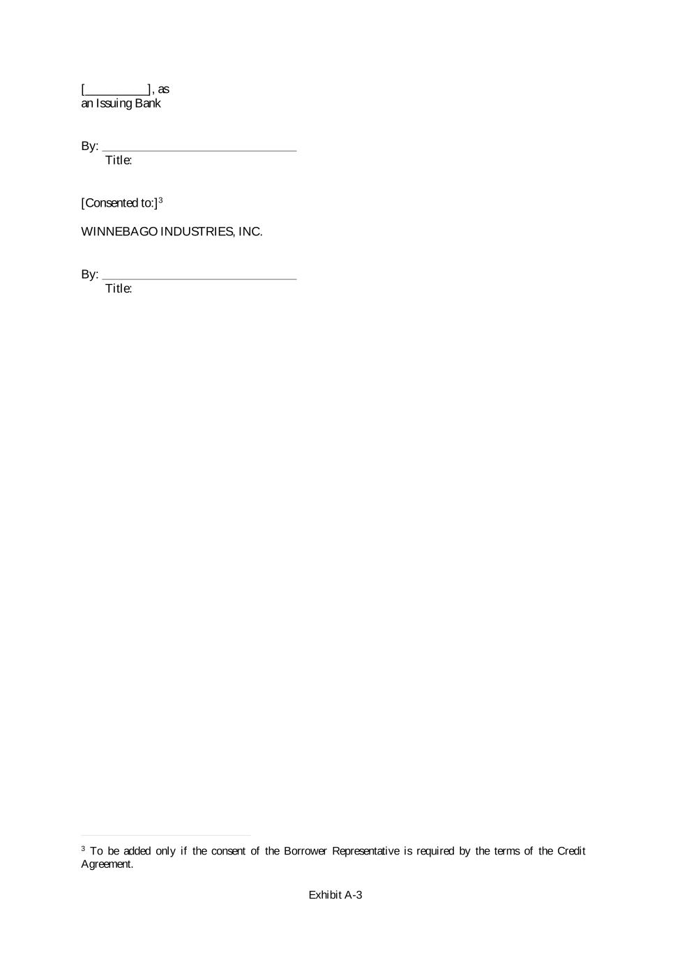 Exhibit A-3 [__________], as an Issuing Bank By: Title: [Consented to:]3 WINNEBAGO INDUSTRIES, INC. By: Title: 3 To be added only if the consent of the Borrower Representative is required by the terms of the Credit Agreement.