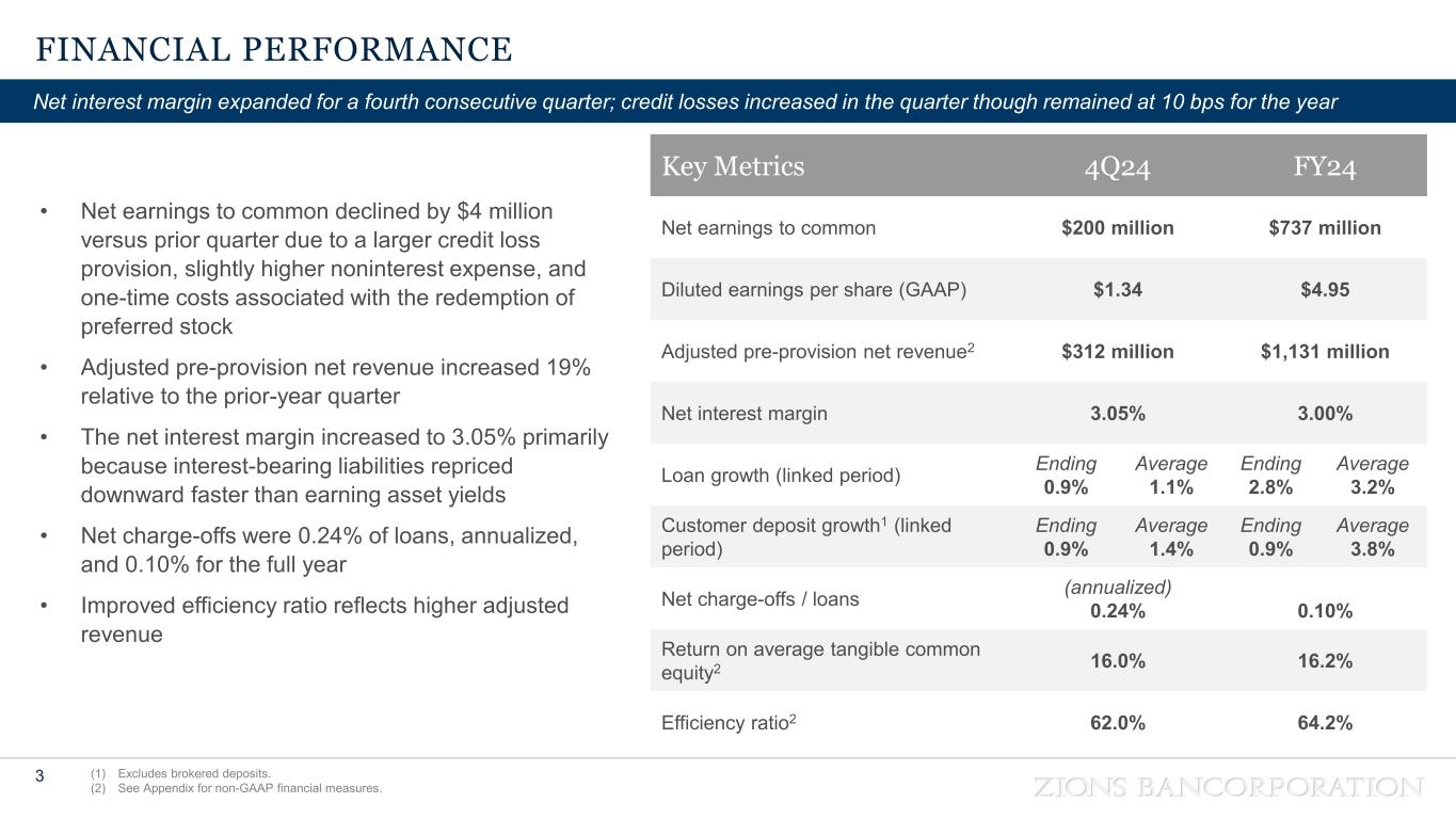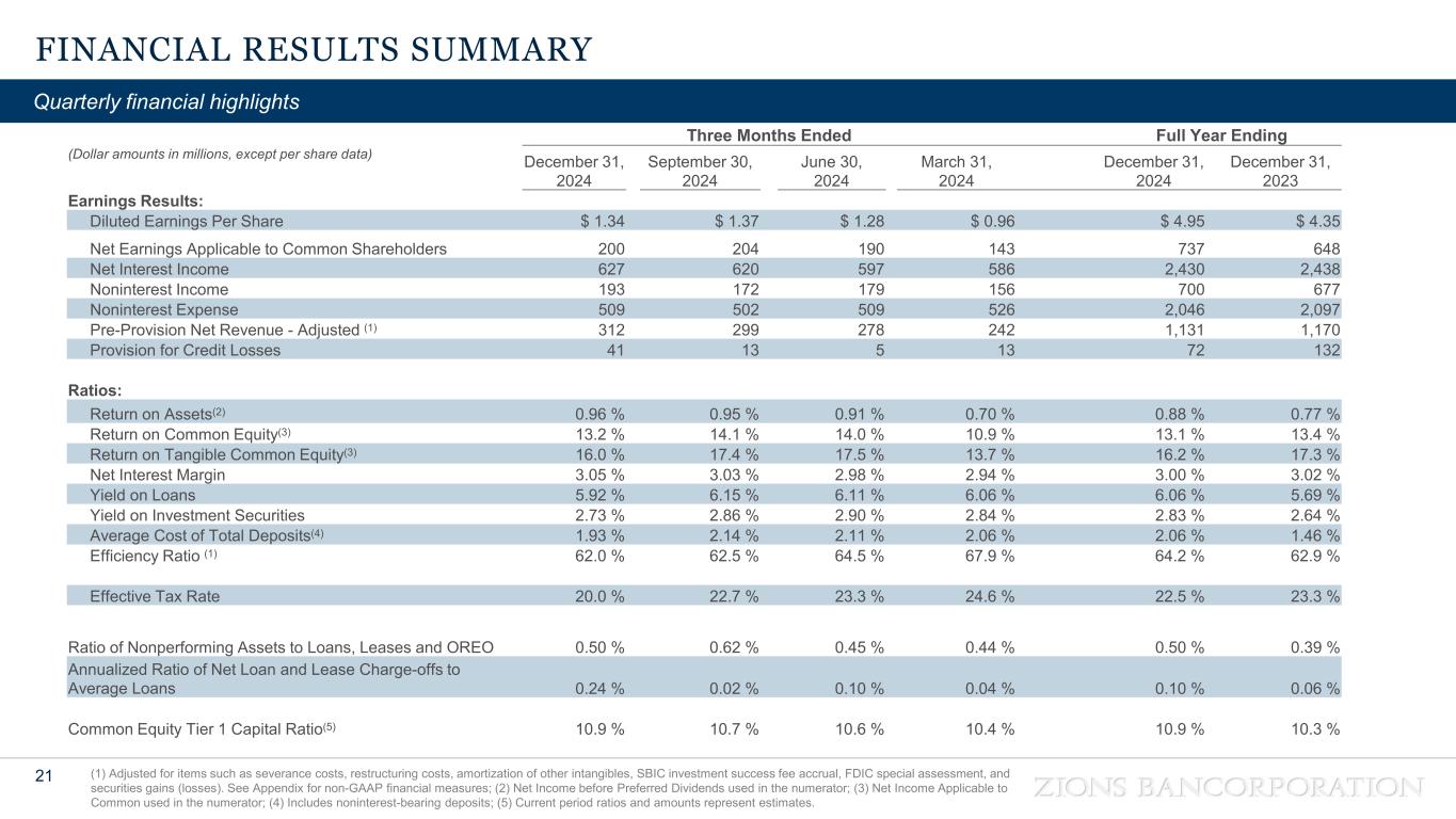 ZIONS2024 FOURTH QUARTER J a n u a r y 2 1 , 2 0 2 5 Financial Review