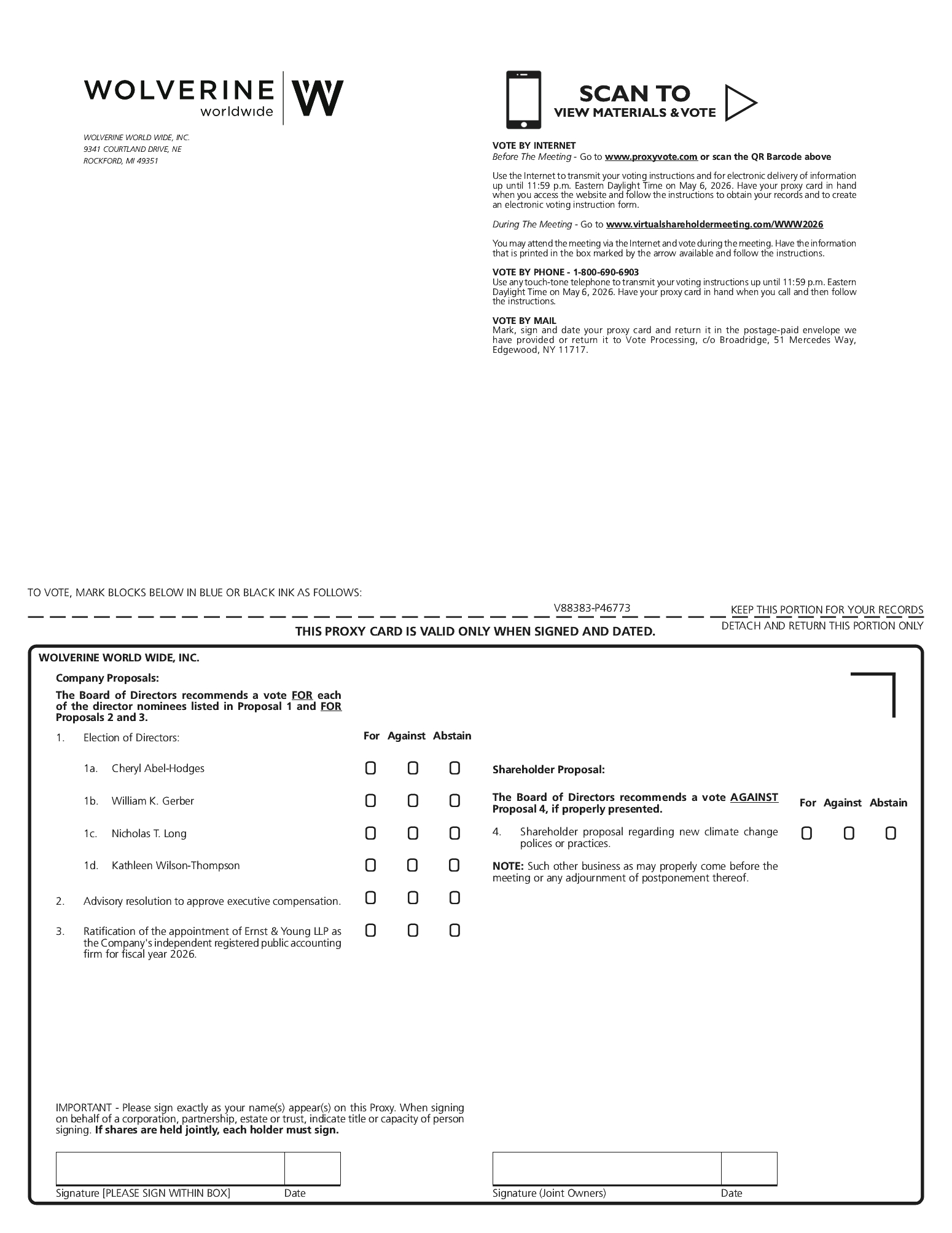 As always, thank you for your continued support of Wolverine Worldwide. Be well, be safe...