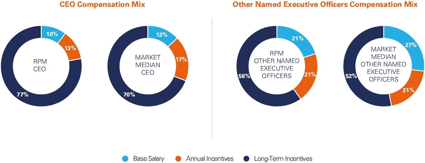 | | RPM International’s fundamental objective is to build long-term stockholder value by profitably growing our businesses and consistently delivering strong financial performance. We think that our ability to generate value for our stockholders is inextricably linked to our ability to provide value to our principal stakeholders, including our customers and associates. • We must continue to earn the ongoing commitment and trust of our stockholders by delivering the solid returns expected by them from an investment in RPM. • We must continue to offer our customers innovative, high-quality products and services at competitive prices. • We must attract and retain high-quality associates at every level of our organization, provide them with the tools they need to do their jobs, and compensate them in such a way as to closely align their interests with our long-term success. • We must conduct our business in conformity with The Values & Expectations of 168, which encompass complying with all legal and ethical standards, and working to be exemplary corporate citizens. We do not focus narrowly on efforts to maximize the short-term price of our stock, and think that such an approach is fundamentally misguided. Instead, we believe that emphasizing consistent value creation in our businesses will maximize the long-term value of our stockholders’ investment. In short, we manage our businesses to create wealth for our stockholders. Creating value for our stakeholders is how we have achieved, and will continue to achieve, that objective. | |