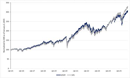 In the graph below, references to “SPXFP” are to the S&P 500 Futures Excess Return Index and references to “SPX” are to the S&P 500® Index.