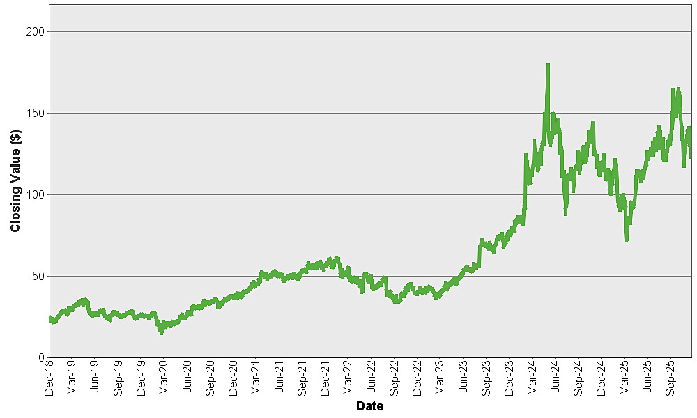 The graph below shows the closing value of Dell Technologies Inc. for each day such value was available from December 26, 2018 to December 19, 2025. We obtained the closing values from Bloomberg L.P., without independent verification. If certain corporate transactions occurred during the historical period shown below, including, but not limited to, spin-offs or mergers, then the closing values shown below for the period prior to the occurrence of any such transaction have been adjusted by Bloomberg L.P. as if any such transaction had occurred prior to the first day in the period shown below. You should not take historical closing values as an indication of future performance.