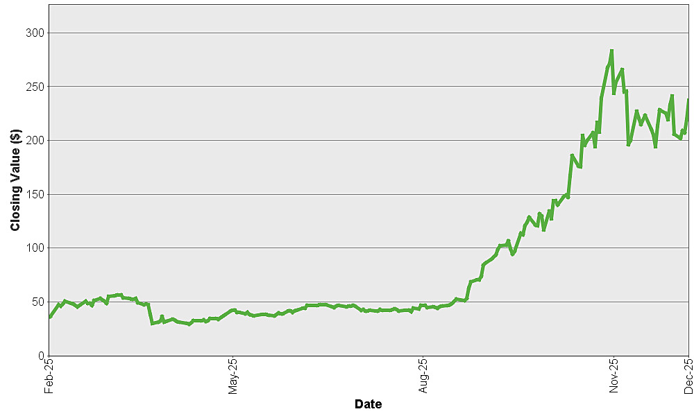 The closing value of Sandisk Corporation on December 19, 2025 was $237.61.