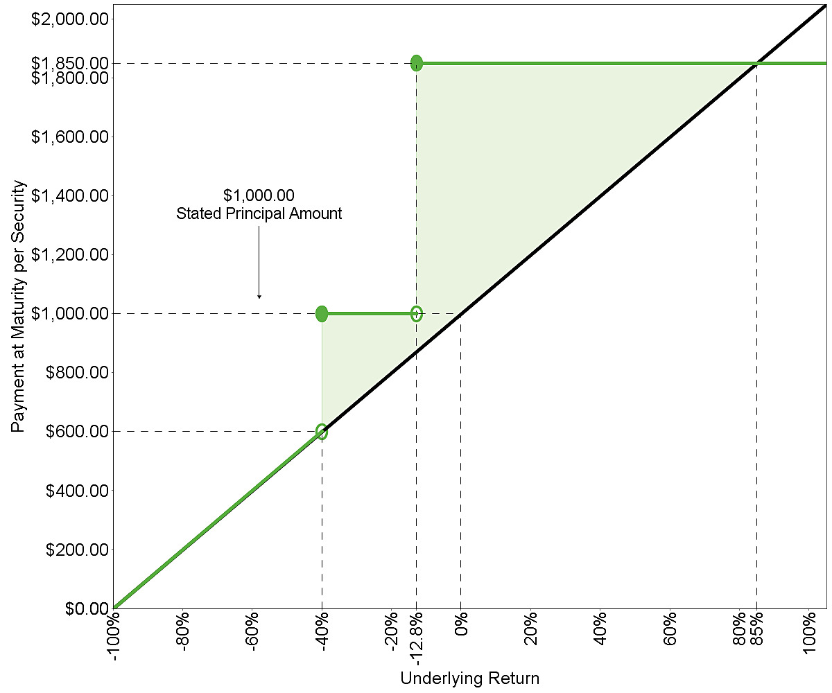 ▪The securities offer the potential for automatic early redemption at a premium following the first valuation date (other than the final valuation date) on which the closing value of the underlying is greater than or equal to the autocall barrier value. If the securities are not automatically redeemed prior to maturity, the securities will provide for (i) repayment of the stated principal amount plus a premium at maturity if the final underlying value is greater than or equal to the autocall barrier value or (ii) repayment of the stated principal amount at maturity, with no premium, if the final underlying value is less than the autocall barrier value but greater than or equal to the final barrier value specified below. However, if the securities are not automatically redeemed prior to maturity and the final underlying value is less than the final barrier value, you will lose 1% of the stated principal amount of your securities for every 1% by which the final underlying value is less than the initial underlying value. Although you will have downside exposure to the underlying, you will not receive dividends with respect to the underlying or participate in any appreciation of the underlying.