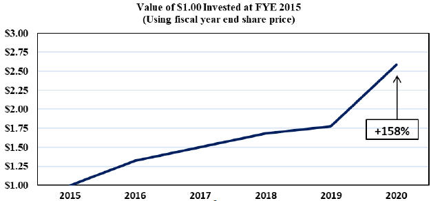 | • | 79% of our other Named Executive Officers’ total target compensation opportunity was performance-based for our NEOs who served as executive officers for the entire year, with 60% of their regular long-term incentive (equity) awards subject to performance-based vesting. (Excludes a one-time retention award granted to Mr. Toth in August 2020.) |
