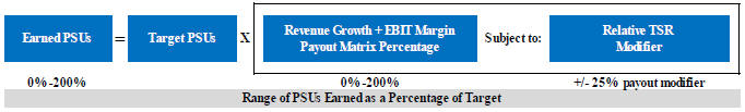 | Performance Stock Options (“PSOs”) | • Reward achievement of 3-year financial goals and TSR relative to peers• Encourage long-term stock price growth and executive retention through 3-year cliff vesting, a TSR metric and a seven-year term to exercise the options• Provide leveraged gains aligned with stockholders through use of performance-based awards and a vehicle that ties gains to increases in stock price | |