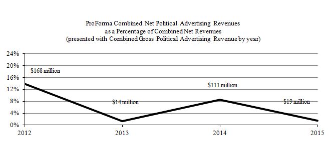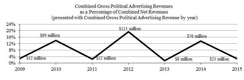 The Company’s operations as of December 31, 2015, include television stations (which cover 23% of the U.S.), websites and digital operations as shown on the following map: