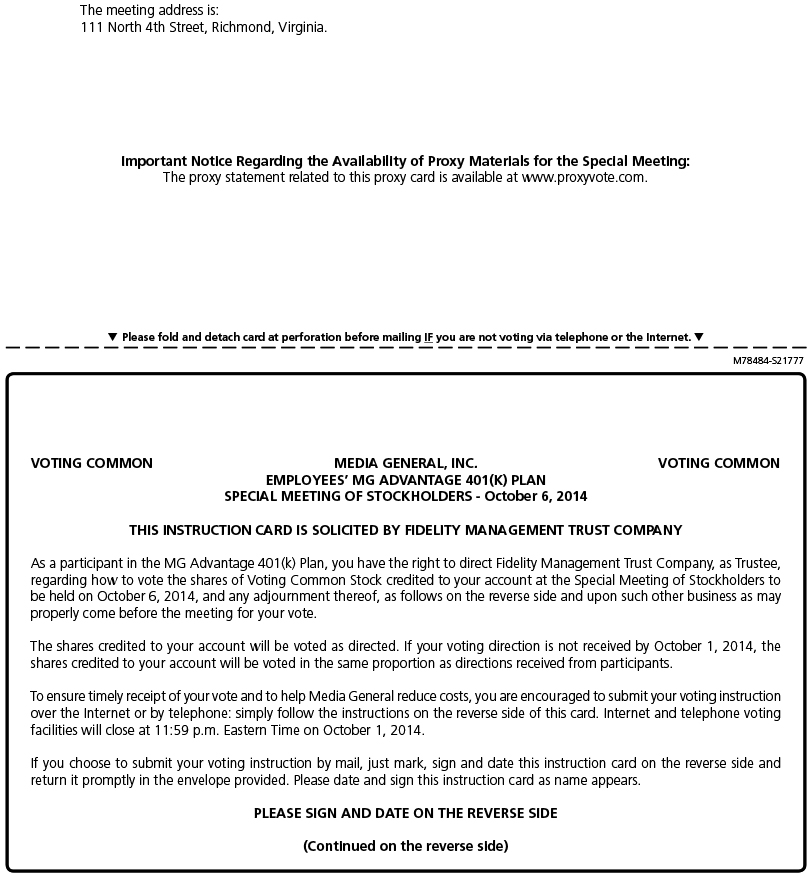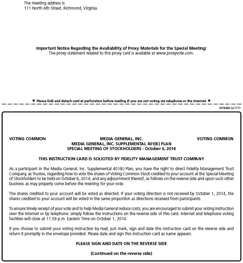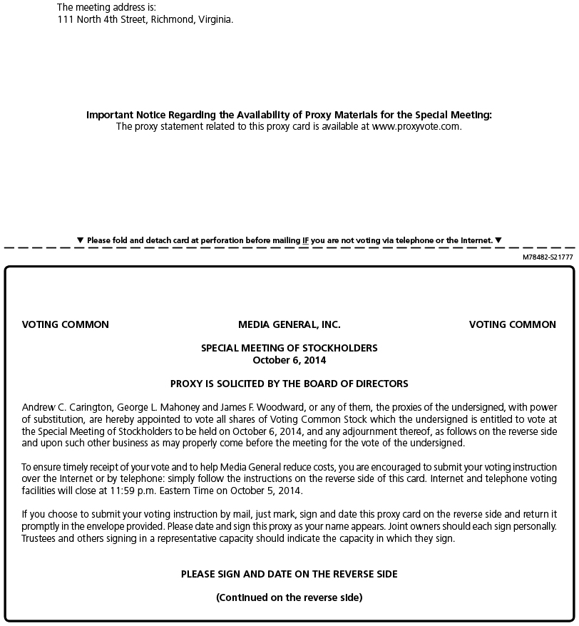 The holders of non-voting common stock of Media General are receiving this Notice for informational purposes and are not entitled to vote their shares of non-voting common stock of Media General on any proposals being submitted to the shareholders of Media General for approval.
