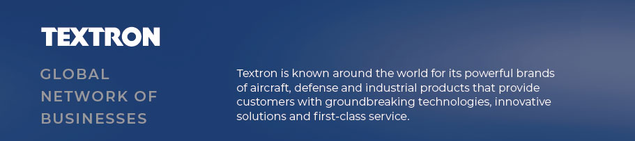 Textron Aviation is home to the Beechcraft® and Cessna® aircraft brands and is a leader in general aviation through two principal product lines: aircraft and aftermarket parts and services. Aircraft includes sales of business jets, turboprop aircraft, military trainer and defense aircraft and piston engine aircraft. Aftermarket parts and services includes commercial parts sales and maintenance, inspection and repair services, and advanced flight training devices.