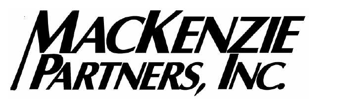 If you have any questions, please feel free to call Mackenzie Partners at 800-322-2885 or collect at 212-929-5500 or email: Proxy@Mackenziepartners.com.