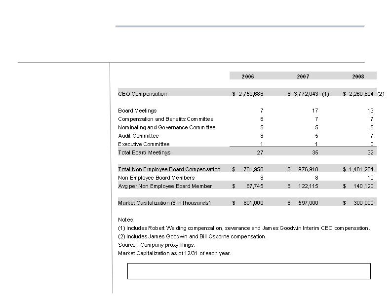 Received over $800,000 in compensation in 2008, including a bonus in a year in