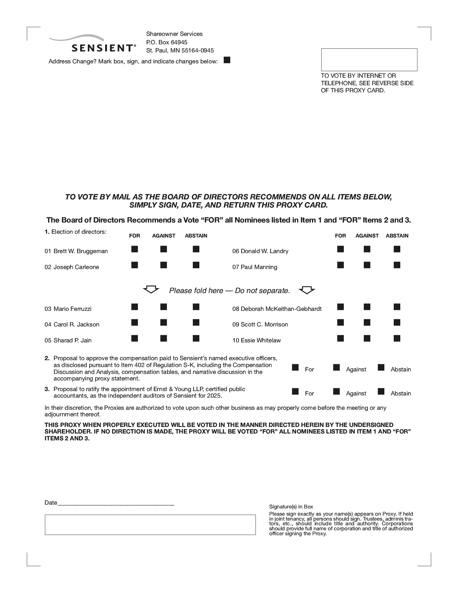 The Company maintains change of control agreements with all of its executive officers, including the named executive officers. These agreements are customary in Sensient’s industry and help to attract and retain key executives in the event of a change of control. These agreements are not employment agreements and have no effect unless there is a change of control. For these purposes, a “change of control” ordinarily occurs if a person acquires 30% or more of Sensient’s Common Stock, a majority of Sensient’s Board consists of persons other than those nominated by the Board, or Sensient is a party to a merger, consolidation, or sale of assets, or acquires the assets of another entity, and Sensient’s shareholders have less than 50% of the Common Stock and voting power of the resulting entity.