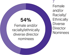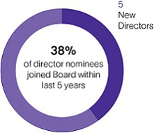 Board composition is critical, and Danaher continues to seek to optimize the mix of skills, traits and tenure represented on our Board. Over the past five years our Board has added important new skills and traits as average director nominee tenure has declined by more than 20%, and more than half of the Company’s 2024 director nominees are diverse from a gender and/or race/ethnicity perspective. |