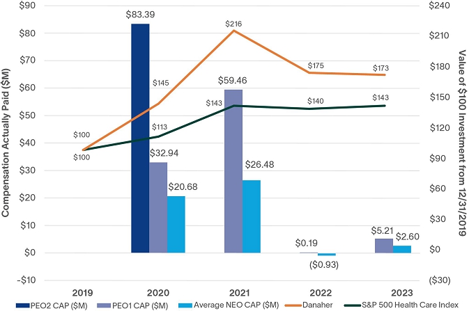 | • | Danaher is the only company in its peer group whose TSR outperformed the S&P 500 Index by more than 1,600 basis points over every rolling 5-year period from and including 1999-2023. |