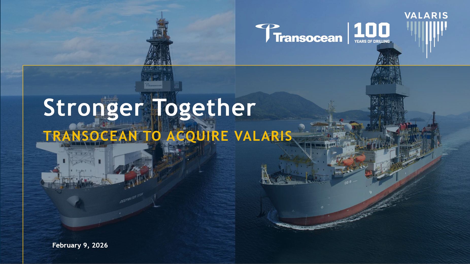 Stronger Together  TRANSOCEAN TO ACQUIRE VALARIS  February 9, 2026