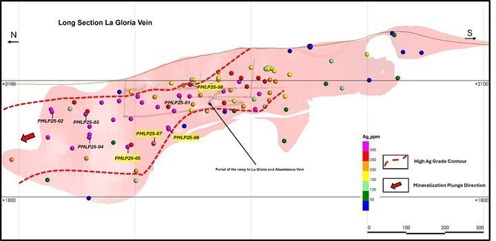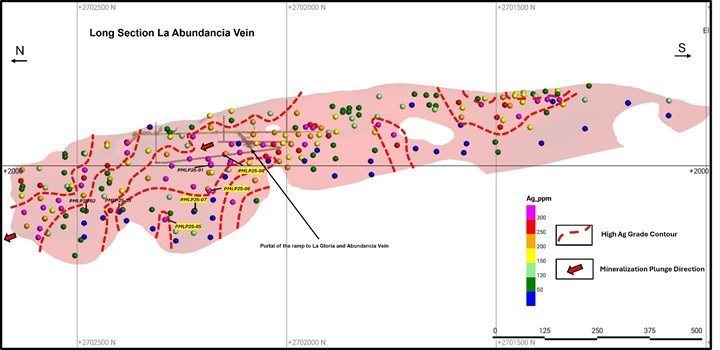 | · | Hole PMLP 25-08 at Abundancia: 463 g/t Ag and 0.61 g/t Au over 4.00 metres true width | |
