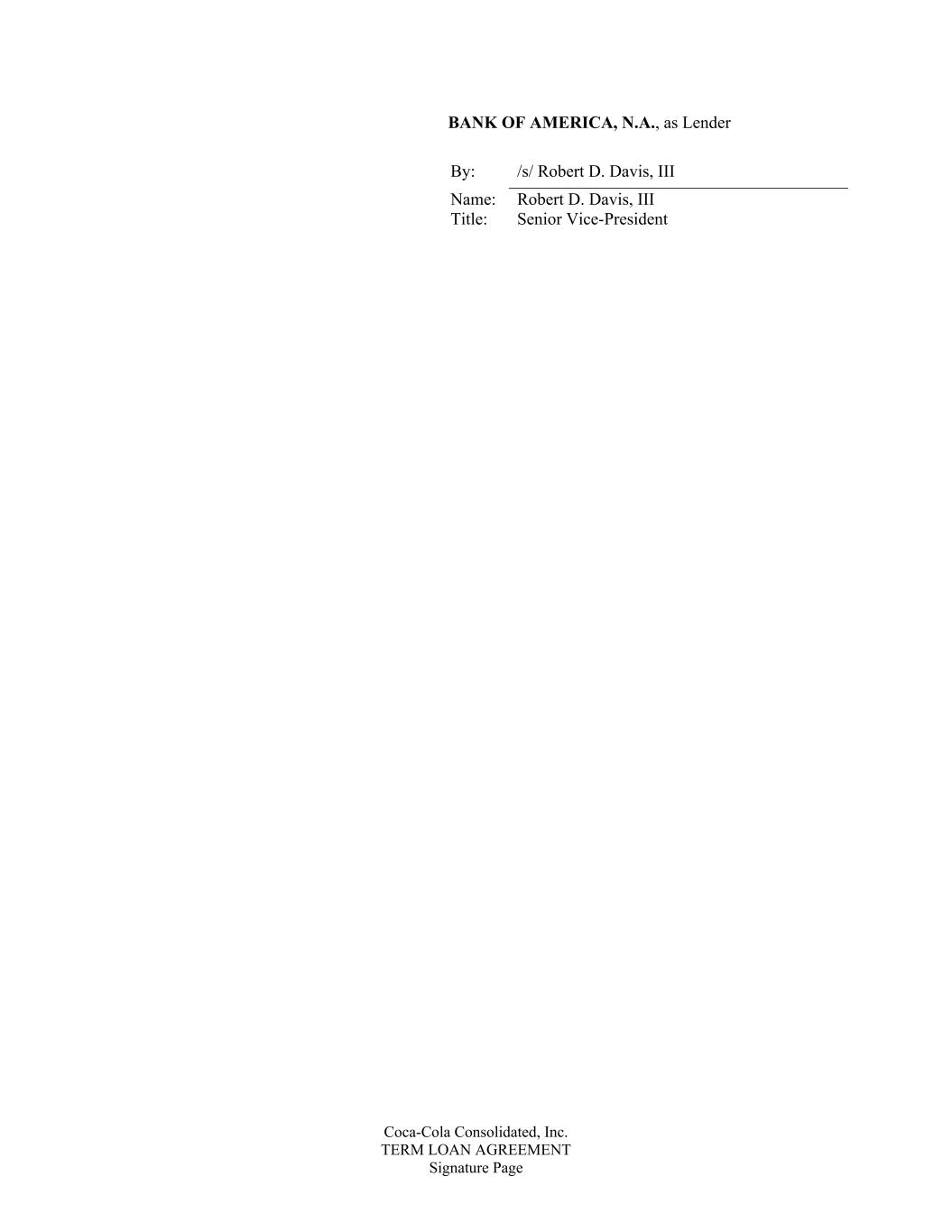 Coca-Cola Consolidated, Inc. TERM LOAN AGREEMENT Signature Page BANK OF AMERICA, N.A., as Lender By: /s/ Robert D. Davis, III Name: Robert D. Davis, III Title: Senior Vice-President