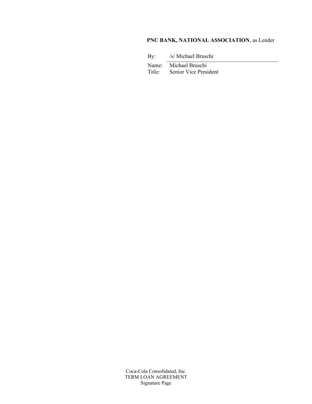 Coca-Cola Consolidated, Inc. TERM LOAN AGREEMENT Signature Page PNC BANK, NATIONAL ASSOCIATION, as Lender By: /s/ Michael Bruschi Name: Michael Bruschi Title: Senior Vice President