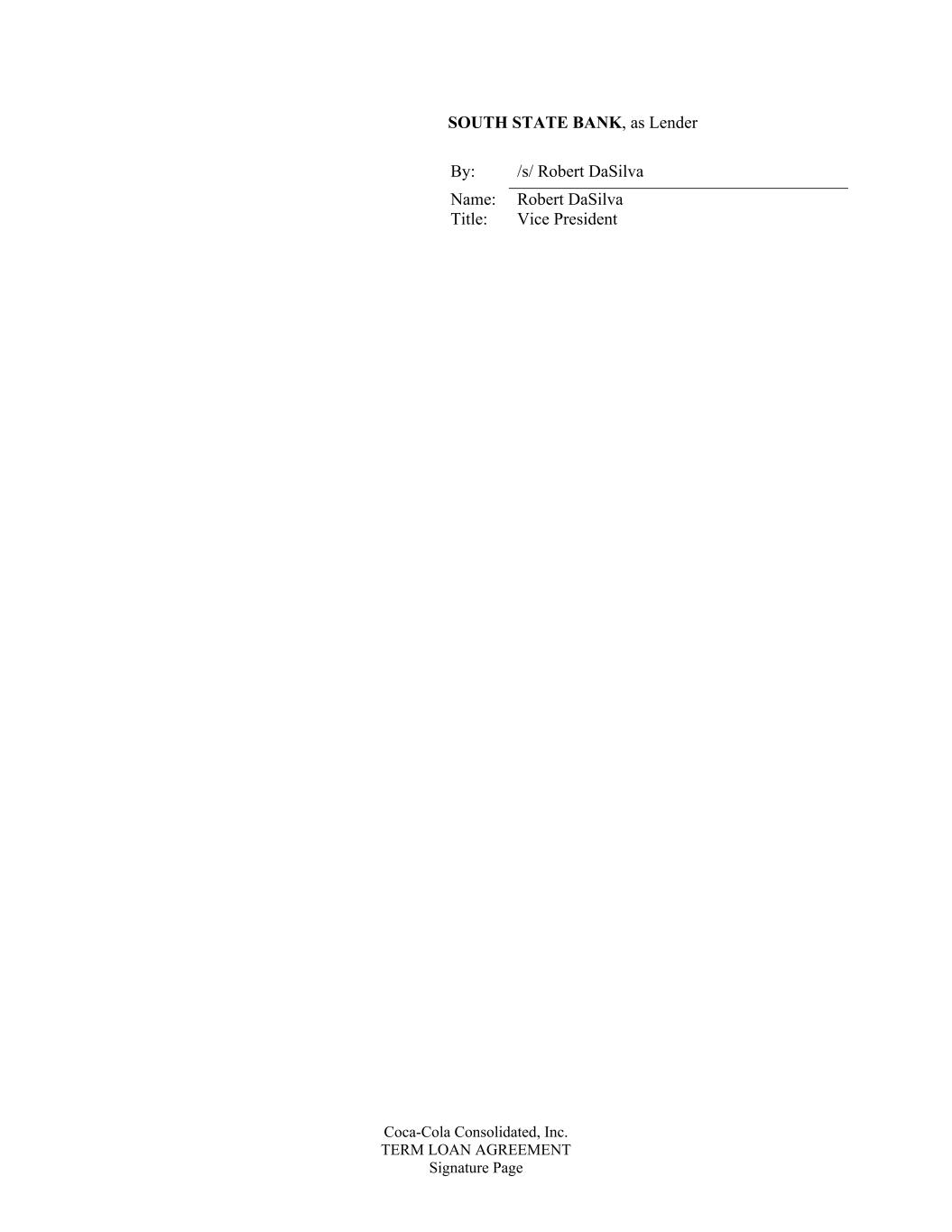 Coca-Cola Consolidated, Inc. TERM LOAN AGREEMENT Signature Page SOUTH STATE BANK, as Lender By: /s/ Robert DaSilva Name: Robert DaSilva Title: Vice President