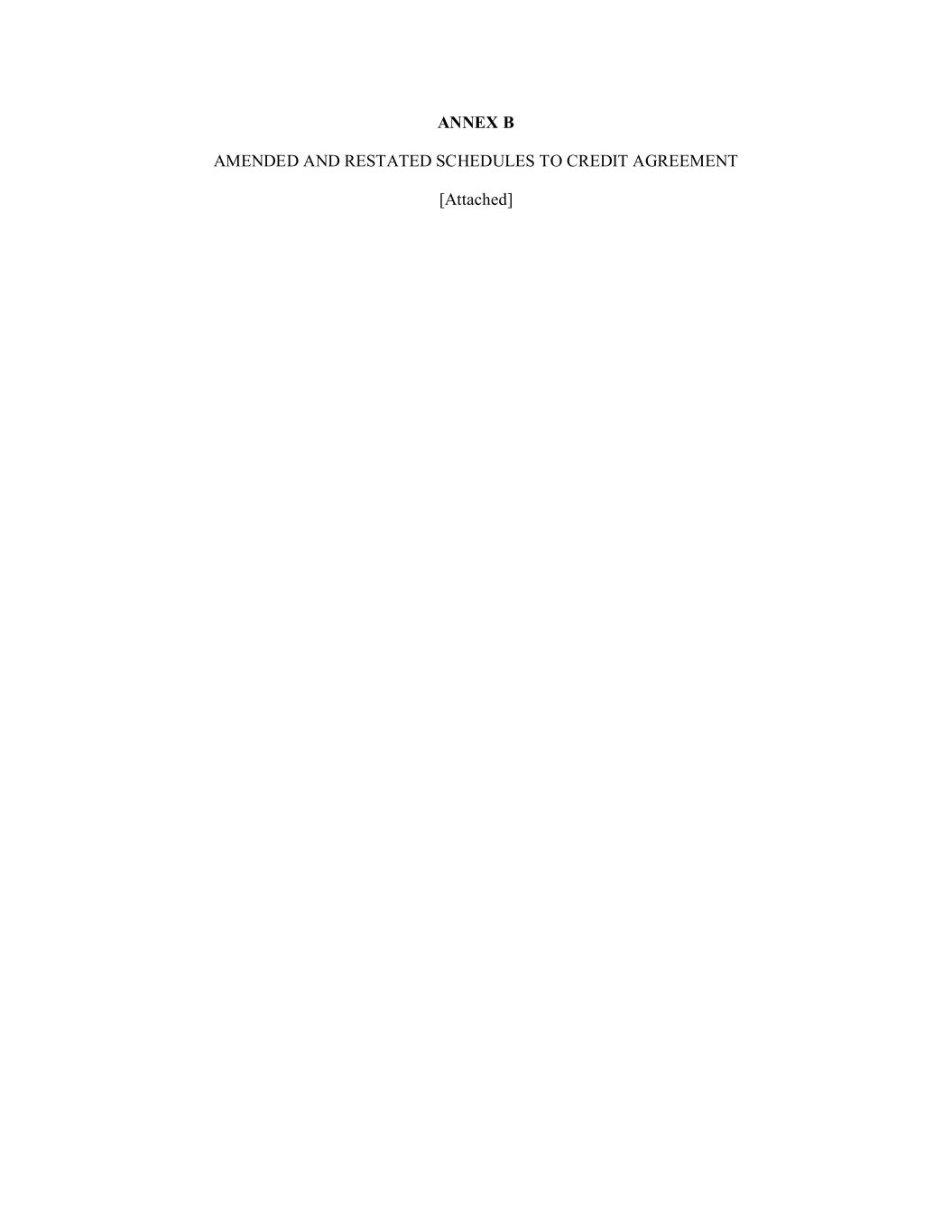 ANNEX B AMENDED AND RESTATED SCHEDULES TO CREDIT AGREEMENT [Attached]