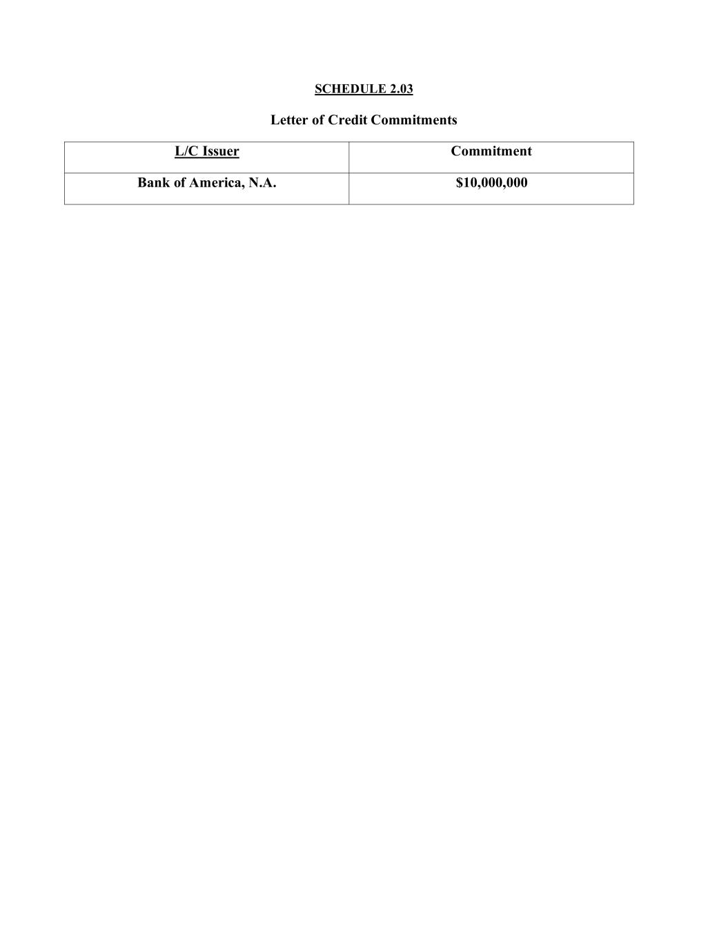 SCHEDULE 2.03 Letter of Credit Commitments L/C Issuer Commitment Bank of America, N.A. $10,000,000