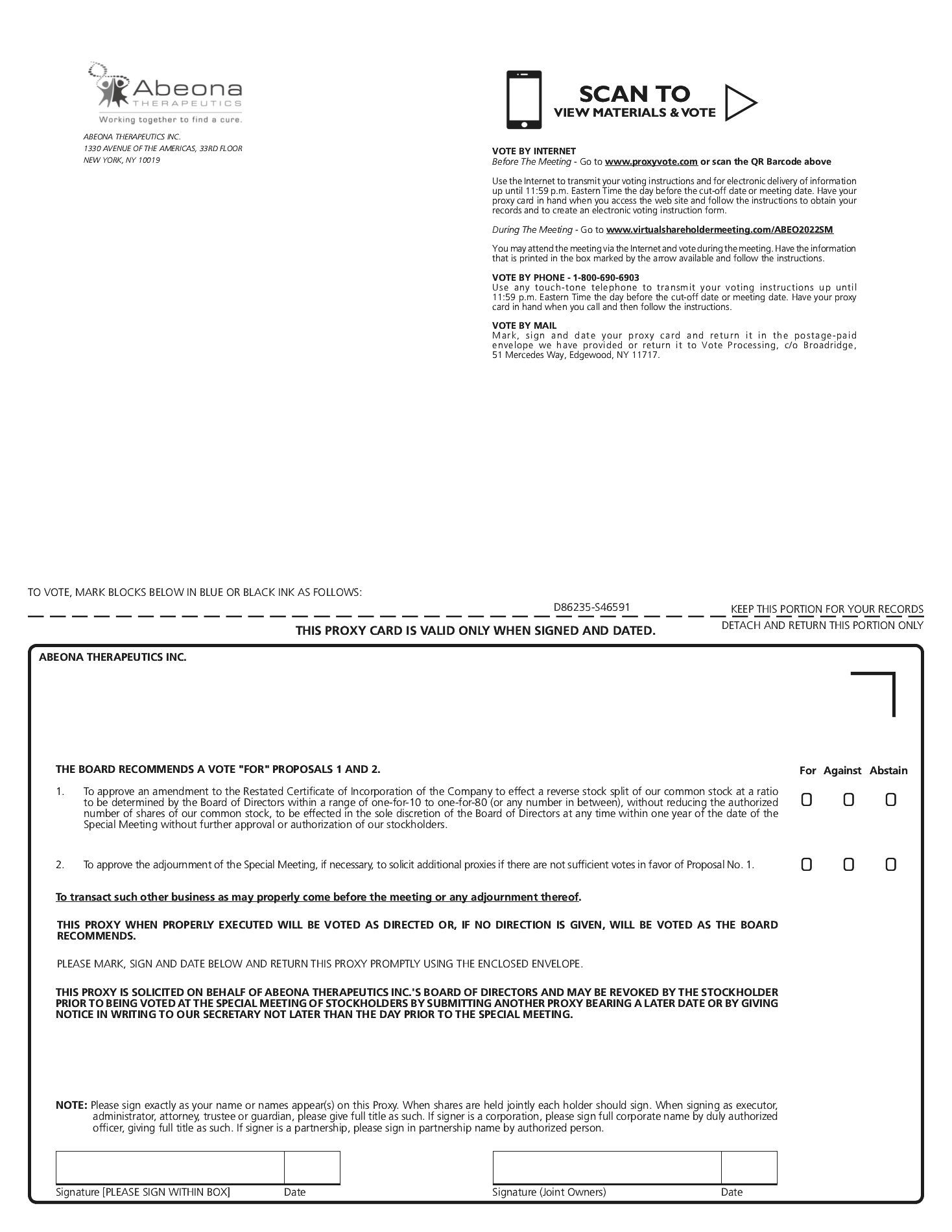 • | the Board believes that the increase in the number of available shares of Common Stock following the Reverse Stock Split will provide the Company with the ability to support its future anticipated growth and would provide greater flexibility to consider and respond to future business opportunities and needs as they arise, including equity financings and stock-based acquisitions of new technology and product development candidates; |