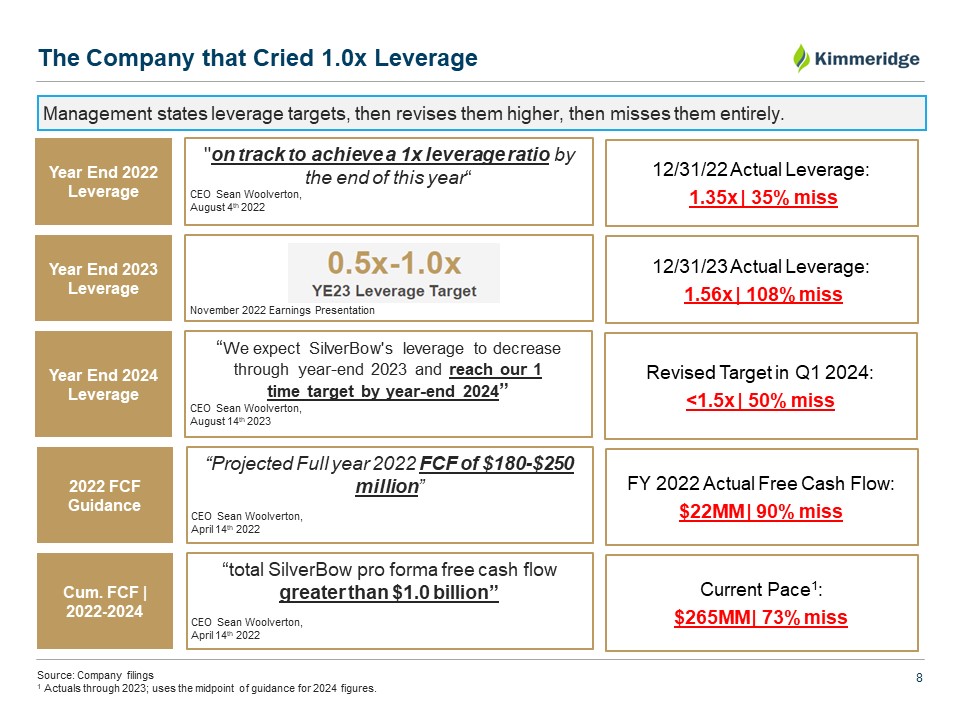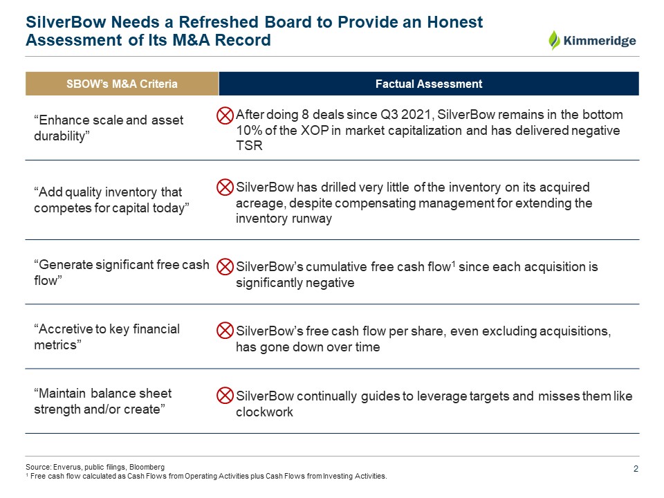 | · | SilverBow claims free cash flow generation is central to its M&A criteria, yet its acquisitions have been a significant drag on free cash flow since the start of 2021. |