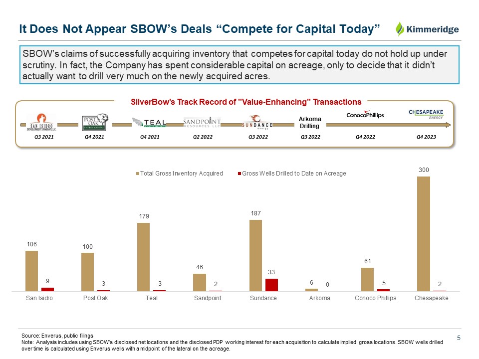 | · | Despite SilverBow’s claims to the contrary, minimal drilling activity has taken place on acquired acreage, suggesting they rarely compete for capital. |