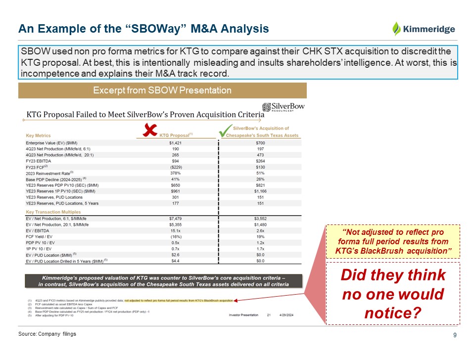 The lack of M&A experience on SilverBow’s Board was most recently on display with its failed analysis of Kimmeridge’s proposal to combine SilverBow with Kimmeridge Texas Gas (“KTG”). In this instance, the Board was unable to even account for acquisitions that KTG had made, which they would have been able to do if they simply requested access to Kimmeridge’s prepopulated data room.