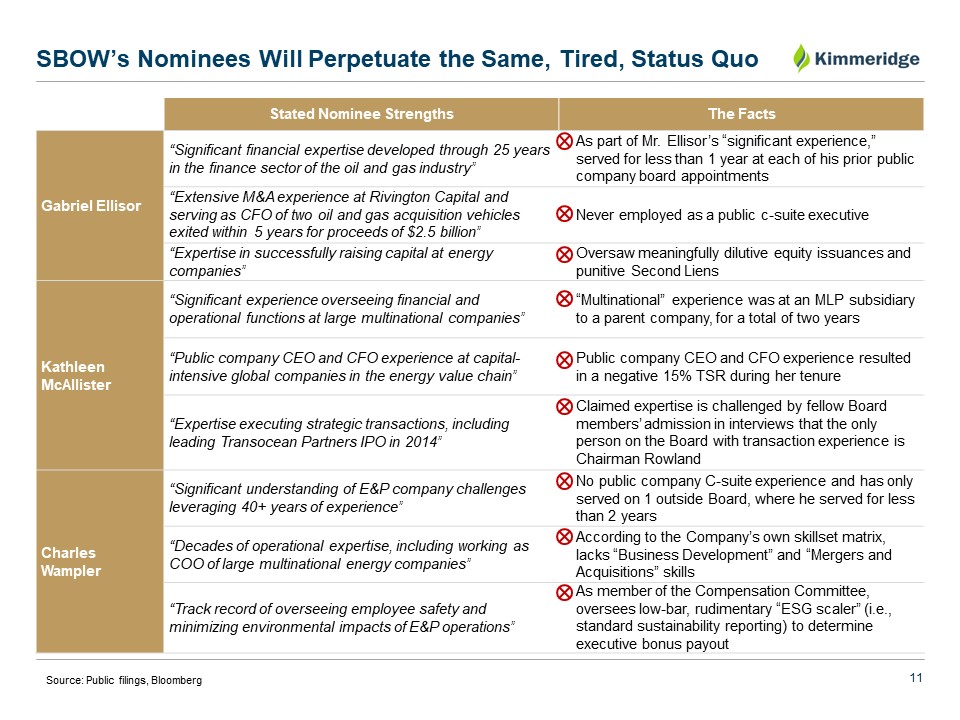 Additional information regarding Kimmeridge’s definitive proxy statement can be found at www.Kimmeridge.com/sbow/.