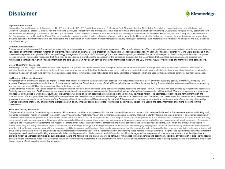 Kimmeridge Energy Management Company, LLC, KEF Investments, LP, KEF Fund V Investments, LP, Benjamin Dell, Alexander Inkster, Neda Jafar, Denis Laloy, Noam Lockshin, Henry Makansi, Neil McMahon, Douglas E. Brooks, Carrie M. Fox and Katherine L. Minyard (collectively, the “Participants”) have filed a definitive proxy statement and accompanying GOLD proxy card (the “Proxy Statement”) with the Securities and Exchange Commission (the “SEC”) to be used to solicit proxies in connection with the 2024 annual meeting of shareholders of SilverBow. Shareholders of the Company are advised to read the Proxy Statement and other documents related to the solicitation of proxies with respect to the Company by the Participants because they contain important information, including additional information related to the Participants and a description of their direct or indirect interests by security holdings or otherwise. Such materials are available at no charge on the SEC’s website, https://www.sec.gov or at www.Kimmeridge.com/sbow/.