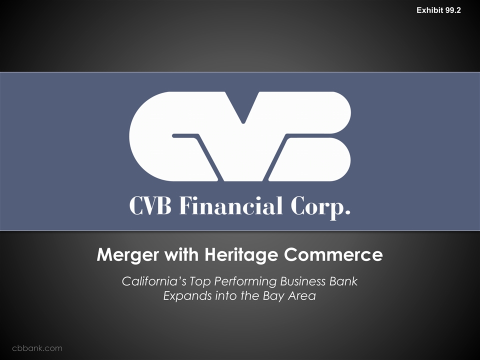 .2 Merger with Heritage Commerce California’s Top Performing Business Bank Expands into the Bay Area cbbank.com