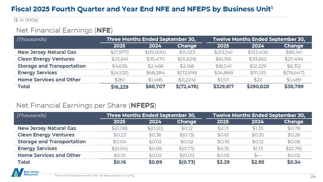 accordance with management’s expectations, assumptions and beliefs or that the effect of future developments on NJR will be those anticipated by management. Forward-looking statements in this earnings presentation include, but are not limited