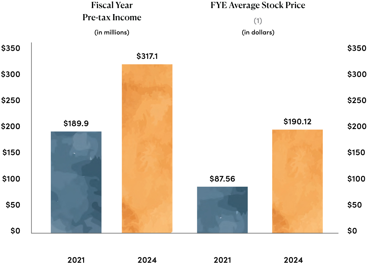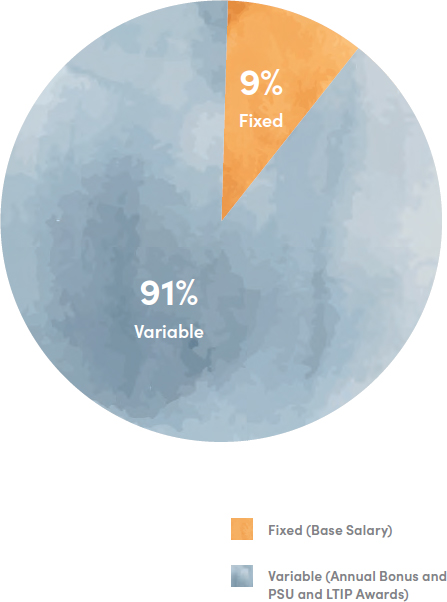 A large portion of our compensation program is tied to long-term and sustained Company performance, our LTIP awards are earned after a multi-year performance period and certain of our LTIP and all of our PSU awards are subject to time-based vesting conditions that extend beyond the performance periods and are further subject to a mandatory two-year post-vesting delayed delivery;