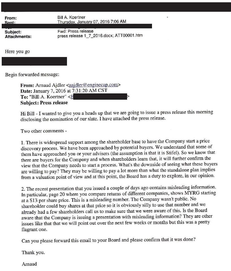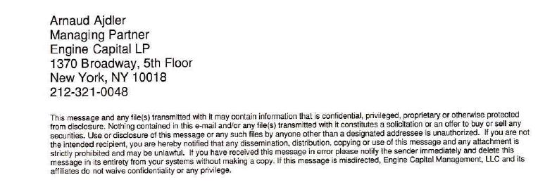 | 3. | Please provide us supplemental support for the December 15 E-Mail and the January 7, 2016 e-mail, each from Engine Capital to you. |
