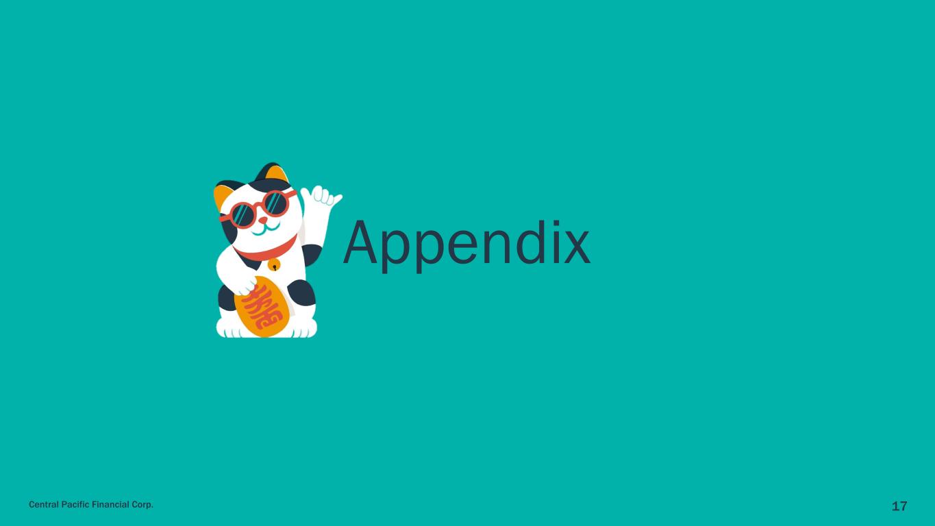 16Central Pacific Financial Corp. ✓ Primed for revenue growth through loan and fee income opportunities ✓ Valuable deposit franchise with generating capabilities ✓ Efficiency gains through technology ✓ Strong capital, credit and liquidity Key Takeaways
