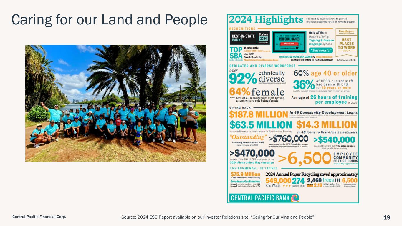18Central Pacific Financial Corp. CPB Named Best Bank in Hawaii by Newsweek, Forbes, and Honolulu Star-Advertiser • Newsweek’s America’s Best Regional Banks 2025 • Forbes’ Best-In-State Banks 2024 • Forbes’ America’s Best Banks 2025 • Honolulu Star-Advertiser’s Best Bank in Hawaii 2024