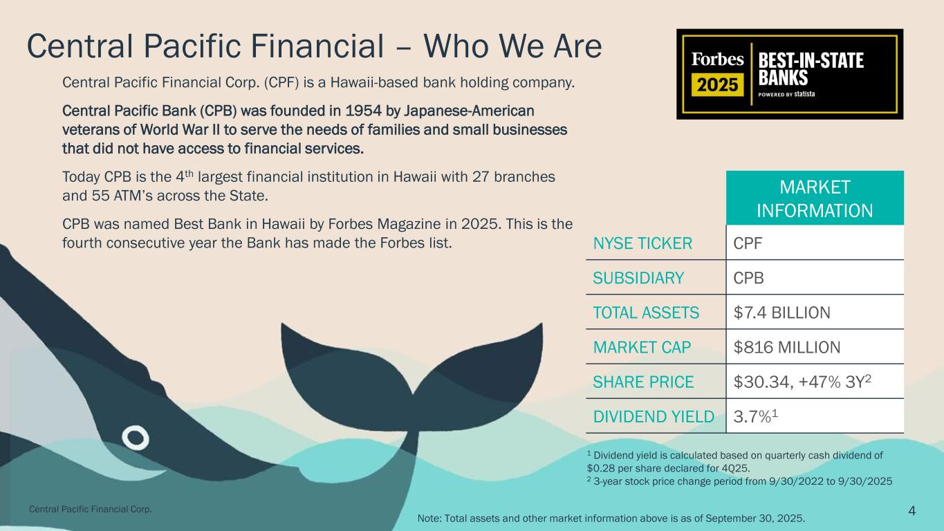 3Central Pacific Financial Corp. Central Pacific Financial Corp. Overview Who We Are Strategic Focus 3Q 2025 Financial Results Appendix